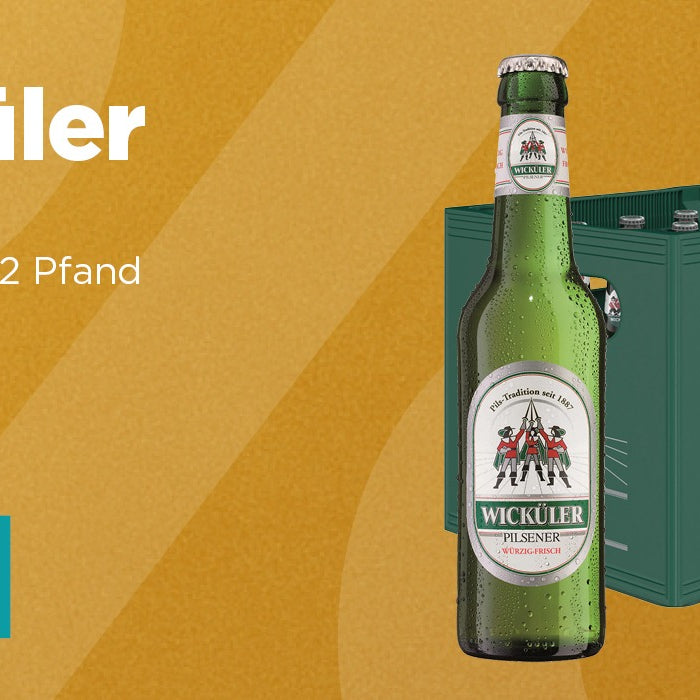 Preis: 12,49 €Angebotspreis: 9,99 €zzgl. 3,42 € PfandGrundpreis: € 1,26pro lUnser Wicküler Pilsener wird bereits seit 1887 in Deutschland gebraut und kann auf eine lange Tradition zurückblicken. Selbstverständlich brauen wi...