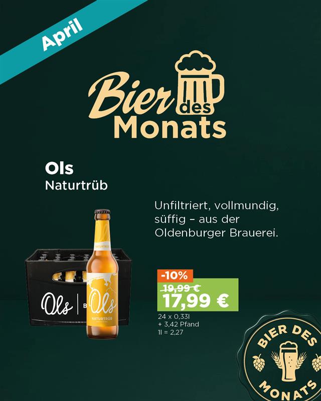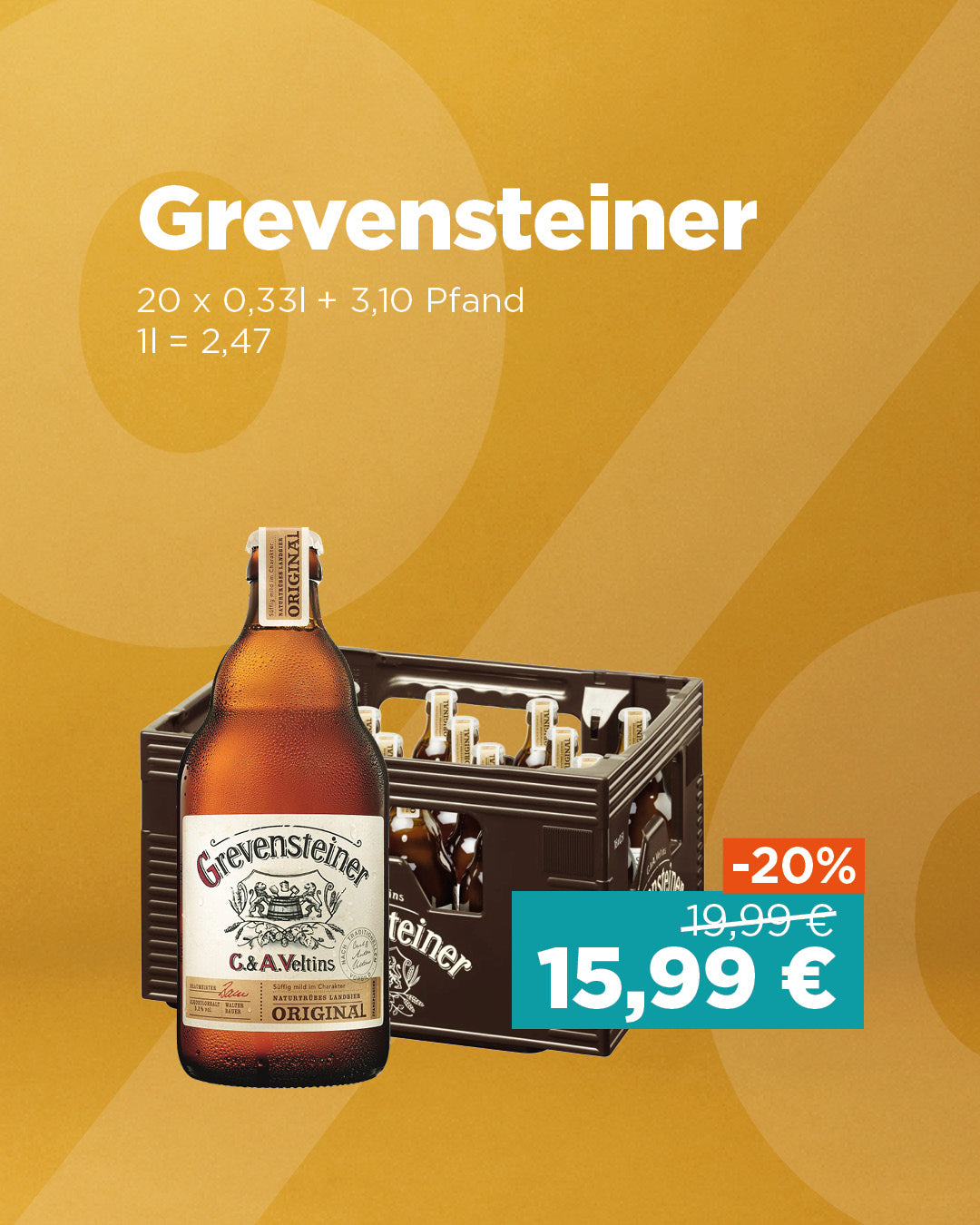 Preis: 19,99 €Angebotspreis: 15,99 €zzgl. 3,10 € PfandGrundpreis: € 2,42pro lDas naturtrübe Grevensteiner Original ist ein süffiges Landbier, das mit weichem Quellwasser und erntefrisch verarbeitetem Hopfen gebraut wird.Das ...